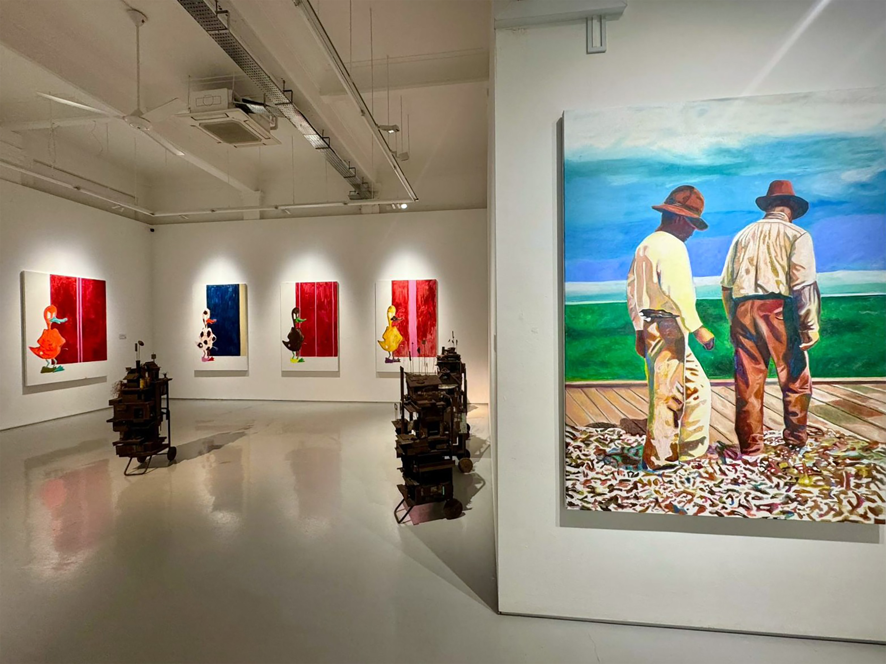 The Columns Gallery Singapore gathers works by Dominic Mangila, Alfredo and Isabel Aquilizan, and Manuel Ocampo in a presentation that unfolds as an afterimage rather than a conclusion. Emerging from the resonant field of Isang Dipang Langit, this exhibition is not a return but a quiet continuation, where memory lingers, materials carry lived histories, and gestures remain suspended between departure and becoming.