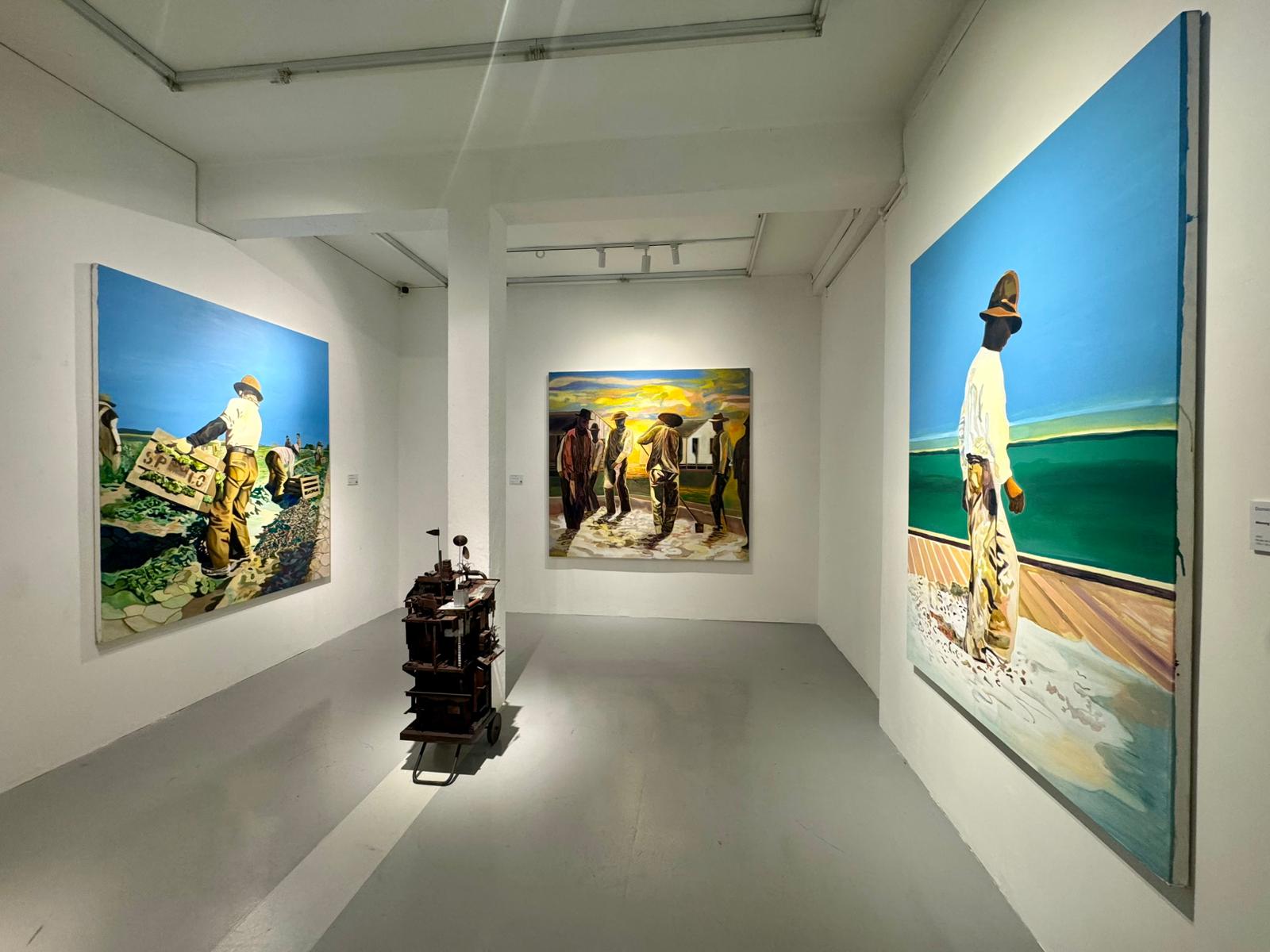 Dominic Mangila(b.1978- Philippines)’s paintings often reinterpret historic imagery and labor scenes to confront the intersections of colonial memory, diaspora, and social class. His 2023 solo exhibition Pastures of Plenty at The Drawing Room revisited the “Manong Generation”—Filipino migrant farmworkers in early 20th-century America—melding historical documentation with expressive, layered brushwork. His art frequently engages the visual language of modernism while embedding political and cultural subtext.
